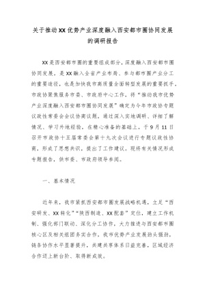 关于推动XX优势产业深度融入西安都市圈协同发展的