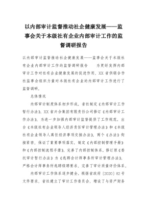 以内部审计监督推动社企健康发展——监事会关于本级社有企业内部审计工作的监督